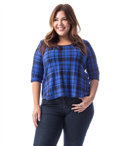 ROYAL BLUE PLAID PLUS SIZE TOP